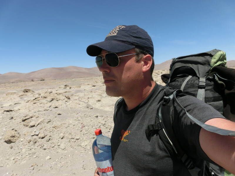 En zo is het inderdaad. In Chili raakte ik in de woonkamer van een hospedaje aan de praat met een stel bouwvakkers. Ze hadden alcohol, dronken het ene glas na het andere, en ik mocht meezuipen. Supergeduldig met mijn gebrekkige Spaans. Op een gegeven wilden ze foto’s maken als aandenken van deze avond. Ik moest wel een (veel te strak) shirt van hun favoriete voetbalteam aan. Geen idee welke club, maar helemaal prima. We zaten tot 04.30 uur aan die lange tafel en met een kater vervolgde ik de volgende dag mijn weg zuidwaarts door hun langgerekte land.